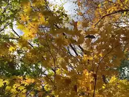 โ๏ธ Overhead, a natural archway of gold and red leaves.
