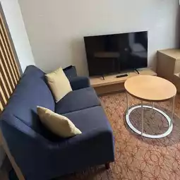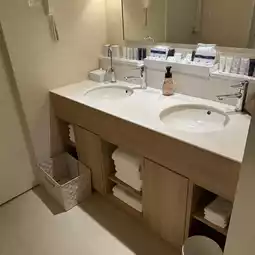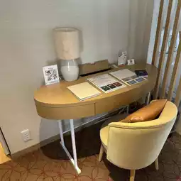 The bathroom was spacious, equipped with a bathtub and an automatic toilet. Toiletries were fully stocked, including a high-quality toothbrush. While a shower cap was not included, the overall experience was satisfactory. A wardrobe was located near the entrance, complemented by beautiful wallpaper, adding to the overall appeal.