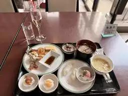The breakfast buffet on the ground floor has free sparkling wine✨ all you can drink, the master includes sushi on site ~ not those cold ice, super fresh!