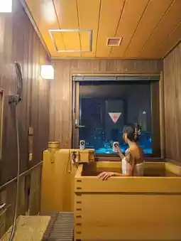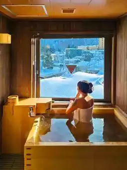 There are also large communal baths and private baths available, where you can enjoy hot springs with stunning mountain views. :)