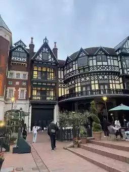 The exterior of the building features a flower garden and beautiful European-style buildings, offering plenty of photo opportunities, especially when the flowers are in full bloom. 💐 The atmosphere is wonderful, perfect for a relaxing stroll and taking photos with friends or family.