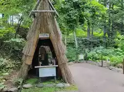 Inside, visitors can explore displays of traditional clothing, tools, crafts, and everyday items that tell the story of Ainu life and resilience. The center also features reconstructed houses and outdoor installations that bring ancient customs to life, allowing you to see how the Ainu lived in harmony with nature.