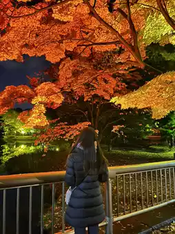 Nakajima Park, located in the heart of Sapporo, is a place where tranquility and nature coexist. In autumn, the park is enveloped in vibrant autumn foliage, and at night, the park is illuminated. The vermilion and gold-hued trees are reflected on the water's surface, and the shimmering light creates a magical world. The Japanese garden and the area around the Iris Pond are particularly popular viewing spots, where the autumn leaves reflected in the water are breathtakingly beautiful. Enjoy the romantic atmosphere of Nakajima Park at night, which is completely different from the serene autumn foliage during the day.