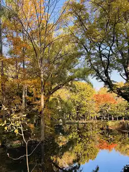 When I arrived at Maruyama Park, there weren’t many people yet. Just a few locals walking their dogs and one or two quietly jogging. The ground was layered with fallen leaves, and every step I took broke the silence with a soft crunch.