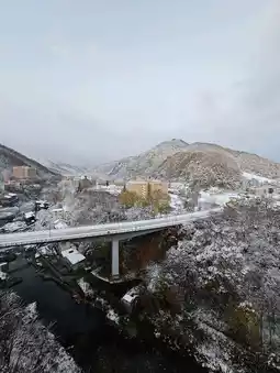 🍁✨ This trip, I'd like to share my experience of visiting Jozankei Onsen in late October 2025. It was incredibly beautiful. Driving into the valley, the trail was filled with vibrant colors of red, orange, and yellow, creating a beautiful gradation like a painting. 🍂🍃 Upon arriving at the onsen town, the atmosphere was warm and peaceful, perfect for relaxing. 💦 The best part was our luck: suddenly, snow fell ❄️, transforming the town into a simultaneous scene of both red leaves and white snow. It truly felt like stepping into a postcard! Soaking in the cool air of the onsen, breathing in the natural scent of nature, and watching the slowly falling snow was a truly romantic and unforgettable experience. ❤️