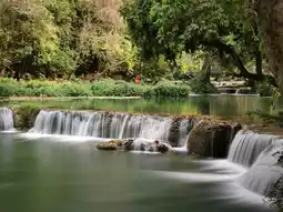 Crystal clear, cool, cascading waterfalls offer all-day fun. 🏞️