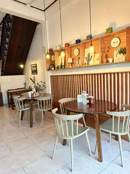 Driving along for fun, let's stop by this breakfast restaurant that I really like. It's decorated well and has a great feel. The shop is an old house on the side of the Chiang Mai-Lamphun road, between Ton Yang road. The shop has a lot of menus to choose from. The coffee is also very good quality. Every corner of the shop is photogenic. The light is beautiful. Today we ordered a hot latte + a pan-fried egg set, Vietnamese bread. It was so filling and delicious that we wanted to tell others. Anyone who comes to this road must not miss it.