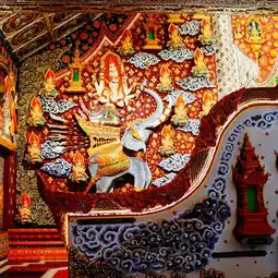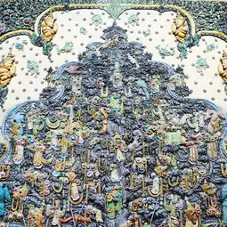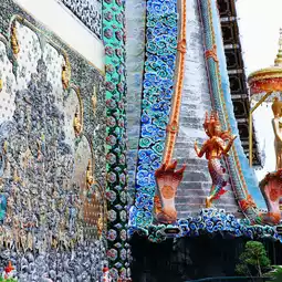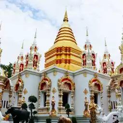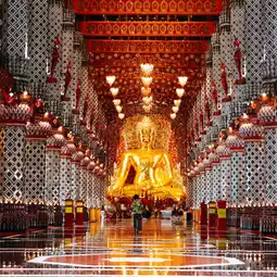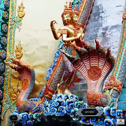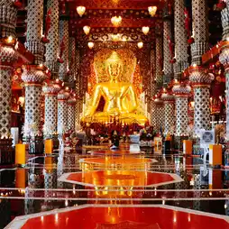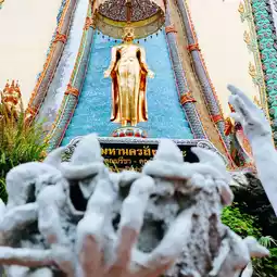 🙏The Mahavihara Boon Baramee, a silver metal sculpture, tells the story of 156 episodes of the life of the Buddha. The interior walls of the Mahavihara are decorated according to the Traibhum Phra Ruang belief and there is Luang Pho Phet Somprathan, 9 meters wide and 12.59 meters high, cast from brass and covered with real gold leaf.