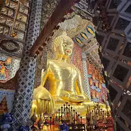 🪷Wat Sri Don Mun is an important temple in Chiang Mai Province. Inside the temple, there is the Wihan Luang Pho Phet, a large and beautiful Lanna-style Buddha statue. The interior of the temple is decorated with beautiful artistic patterns. Outside, there are buildings, chapels, shrines, and pagodas that are decorated with beautiful art. Inside the temple, the atmosphere is as pleasant as heaven. There is a beautiful flower garden. Tourists and devotees like to make merit at this temple. It is well-managed and has staff ready to provide advice and services conveniently.