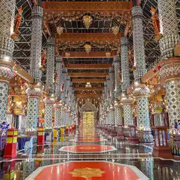 ðRecommended is the large chapel decorated with Lanna-style stucco and crystal glass.
