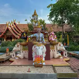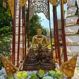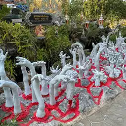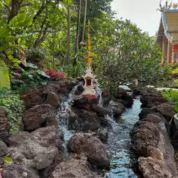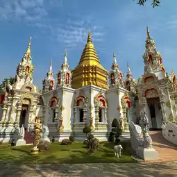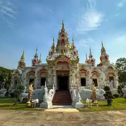 ðWat Sri Damul is located in Saraphi District, Chiang Mai. The temple is very spacious and has interesting decorations. There is a large chapel with glass decorations inside, making it look magnificent like a Buddhist castle. People also like to come here to get their face tattooed and walk around because there is a simulated waterfall around the temple. There are also food shops, resting areas, and restrooms.