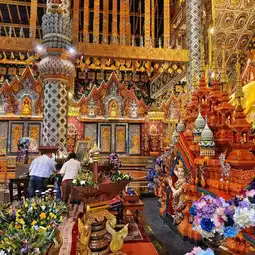 The first thing you notice is the dazzling golden Ubosot (ordination hall). Its intricate patterns reflect rare Lanna craftsmanship.
