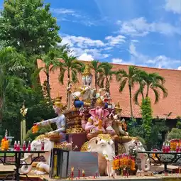 The temple's surroundings offer a shady, tranquil atmosphere, perfect for a slow stroll and auspicious worship.