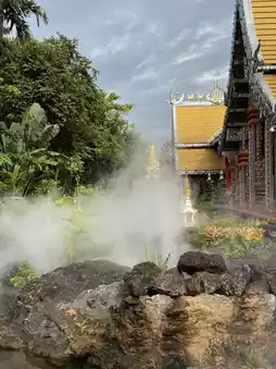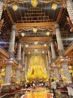 ✨Many people may know Wat Sri Don Moon in Chiang Mai for its magnificent Luang Por Phet Buddha statue, a large Buddha image in the viharn. But there's more to this temple than just that. The exterior of the viharn features a reenactment of the important event when the Lord Buddha descended from the heavenly realm of Sangkassa, where he spent the Rains Retreat in the Davadungsa Heaven to preach to his mother. After the end of the Rains Retreat, he returned to the human world. Upon seeing the offerings made by the gods and humans, he opened the world, allowing all gods and humans to see heaven, the human world, and hell. The gods saw humans, humans saw gods, and hell beings saw humans and gods. They all saw each other in all three realms, hence the name "The Day the Lord Opens the World." The Lord Buddha emitted six-colored rays as he descended from Davadungsa Heaven. Indra created three staircases: a golden staircase, a glass staircase, and a silver staircase, with the top of the stairs resting on the summit of Mount Sumeru. The staircase is located at the gate of Sangkassanakorn. When the Lord Buddha descended, he used the crystal staircase, which is located between the silver and silver staircases. The deities descended on the golden staircase, while the great Brahmas descended on the silver staircase. This procession is called the Thevo Rohana, which is the origin of the Thevo Rohana alms-giving ceremony, which continues to this day. This event is beautifully and atmospherically recreated here.