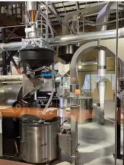 At the back of the shop, there’s a large coffee roasting machine.