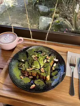 The thick toast topped with ice cream and generously drizzled with matcha creates a perfect balance of bitterness, sweetness, and chocolate flavor—absolutely delicious! 💚
