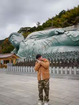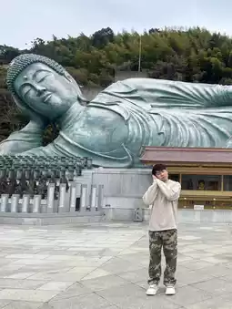 Flying all the way from Thailand to Japan for a spiritual retreat 🇯🇵✈️ Today, we chose to pay our respects at Nanzoin Temple, a famous temple filled with positive energy and inner peace. 🌸 Although it's a bit far, the beauty is worth it. The path to the temple is surrounded by nature and a peaceful atmosphere, making it feel like you've entered another world. 🏯✨
