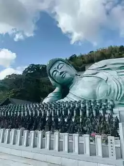 Nanzoin Temple, a renowned temple in the Fukuoka area, might not be familiar to many Thai visitors. However, if you're traveling to Kyushu in Japan, this is a must-visit spot. The highlight here is the massive Reclining Buddha statue, the largest in Japan, measuring over 41 meters in length. Seeing it for the first time is truly awe-inspiring due to its grand scale. Yet, the temple doesn't exude an overly extravagant vibe like some tourist-heavy spots. Instead, it offers a serene and simple atmosphere, maintaining the essence of a traditional local temple.