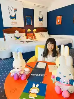 We also stayed in the Miffy room, the hotel room was full of Miffy themed elements, furniture, tea sets, stuffed animals, the hotel also provided guests with exclusive commemorative booklets, door keys and small gifts for souvenirs.