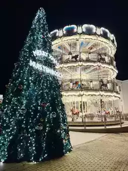 The nighttime carousel was also very beautiful. It’s a three-story carousel; the first floor wasn’t too crowded, but the third floor seemed to be very popular, with quite a long waiting time.