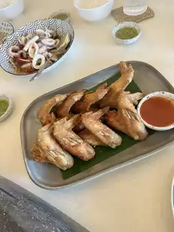 Boho Glasshouse is a seaside restaurant in Pattaya. The atmosphere is very chill, suitable for relaxing and taking pictures. The shop is decorated in a Bohemian style. There are both air-conditioned and outdoor areas. You can sit and enjoy the sea view comfortably. The menu is diverse, especially the fresh and delicious seafood, such as salmon larb and tom klong kung. The service is excellent, making this a must-see destination when visiting Pattaya. Open daily from 11:00 - 24:00.