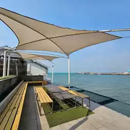 ʙᴀᴀɴ ᴛᴀʜ ᴏɴ ᴛʜᴇ ꜱᴇᴀ The atmosphere is by the sea. The hotel has its own parking lot. You can park in the area, which is very convenient. The rooms here are divided into several levels and prices. The rooms are spacious. The bathrooms are divided into good zones and quite wide, not cramped. The back balcony has a sea view and a bathtub for you to soak in. There are also large round cushions to sit and relax on. The cleanliness of the room is okay. 👌