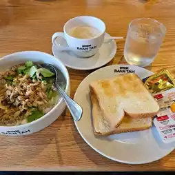 🌿 There is no restaurant here, but there are enough common areas, 2-3 zones (all sea views) to sit and relax and buy things to eat. 😊 Although breakfast is pork congee, there is a lot of pork. When you scoop it up, there will be more pork than rice. 😁 The taste is good and not too salty. 👍 The staff I met were polite and smiling. The accommodation also has free bicycles, which is very suitable for this Bang Saray area. The roads are not wide. Cars do not drive fast. The distances to each place are not far apart. You can ride a bicycle and enjoy it all. Both the two fishing piers Public park + Bang Saray Beach, Bang Saray Temple, Gray Market, Night Market, Seafood restaurant #bomikotravel #Bang Saray #Beachfront accommodation
