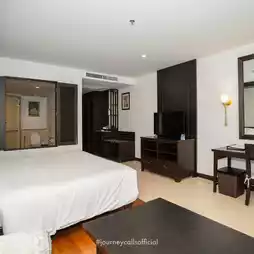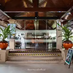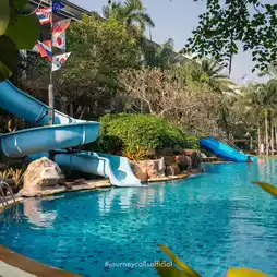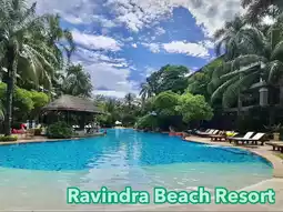 Ravindra Beach Resort and Spa, Najomtien ✨🌴Accommodation in Na Jomtien area, next to the beach, near Pattaya, stands out with a row of palm trees, another accommodation in the Na Jomtien area, not far from Pattaya with a very beautiful beach view, quiet because it is located in the Na Jomtien Beach area. Let me tell you that anyone who likes to chill must come here. The evening light is irresistible. 🌅 There is a cute picnic set for sitting and enjoying the beauty in front of you, it's so cool. 🥰 This time, Phi Jeans stayed in a 𝗗𝗲𝗹𝘂𝘅𝗲 𝗥𝗼𝗼𝗺 room, a spacious room with a balcony outside looking down on the swimming pool. The bathroom is separated into dry and wet zones. There is also a bathtub. Soak while opening the window and talk to friends lying on the bed. 😁 The central swimming pool is in the middle of the rooms. There are 2 large pools with a water slide. Or if you want to play water activities like Ocean Surf, it's also fun. Another pool is located in front of the beach. Here you can see a beautiful sea view. 𝗥𝗲𝘃𝗮 𝗕𝗲𝗮𝗰𝗵 𝗥𝗲𝘀𝘁𝗮𝘂𝗿𝗮𝗻𝘁, a restaurant by the sea, is a beachfront restaurant. Sister Jeans came to try the dinner. The Thai food menu is very delicious. Most importantly, there is live music playing during your meal. It's great! 𝗧𝗵𝗲 𝗥𝗲𝗲𝗳 𝗥𝗲𝘀𝘁𝗮𝘂𝗿𝗮𝗻𝘁 Italian restaurant. Breakfast is a buffet. I recommend grabbing some Ravindra fried dough sticks to eat with pandan custard because it's really delicious. • Full facilities, both spa and fitness. • While waiting to check-in or check-out, you can come and sit here and wait. 𝗪𝗲 𝗣𝗿𝗼𝘂𝗱𝗹𝘆 𝗦𝗲𝗿𝘃𝗲 𝗦𝘁𝗮𝗿𝗯𝘂𝗰𝗸𝘀 is in the lobby. ✨For more information, please call ☎️ : 038 235777———————————————#ravindrabeachresortandspanajomtien #pattaya #reviewpattayaaccommodation #journeycallsofficial