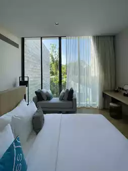 This place also has a communal swimming pool that's very inviting. For anyone looking for a glamorous pool villa like this, come take awesome photos and post them on social media. We recommend this place.