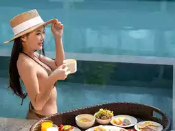 🛌 Villa Cabana Our room is a Pool Villa with a pool behind the room. It can connect to the central pool of the villa zone. The large room is well-proportioned. It comes with complete facilities. I slept very well. For breakfast, the hotel will serve Foating Breakfast to your room. 🥪