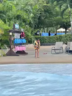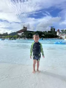💦Lazy River, a whirlpool zone, has a pair of rubber rings for kids and adults to sit on together and float around, enjoying the view. It's very enjoyable.