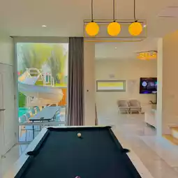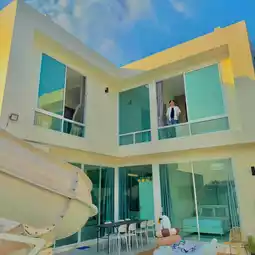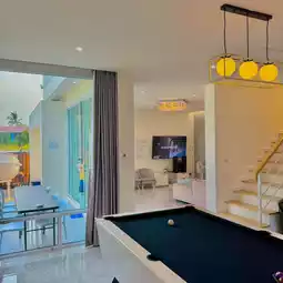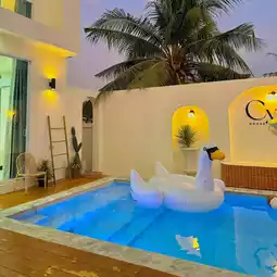 A pool villa that gives you a cafe-like feel. There are also cute photo spots. This is a large 4-bedroom house in a modern style. The atmosphere is quiet and quite private. It has complete facilities. It is a pool villa that is very suitable for relaxation. 🫶🏻🛏️