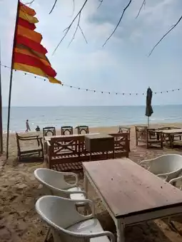 This seaside restaurant is called Glass House. There are many types of food: Western food, Thai food, and most importantly, this restaurant is right by the sea. The atmosphere is very good. If you come in the evening, watching the sunset here will be very beautiful. And they also have tables by the sea. The price of the food is quite high, but if you compare it to the atmosphere and taste, I can tell you that it's definitely worth it. If anyone wants to bring their family or boyfriend to eat here, I recommend it. #Get a discount without relying on luck