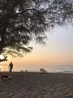 For those who are looking for a beautiful, quiet, and uncrowded beach, we recommend "Hat Klet Kaew". This is considered an unseen spot in Chonburi that you must not miss. It is a secret beach in the new soldier training center, Naval Cadet School. Let me tell you that the atmosphere is very good. It is suitable for chilling out, relaxing, or reading a book. Come and feel the cool air from the sea. It is so cool. And since this beach is located in the area of the Royal Thai Navy, when you enter, you may have to exchange a card before entering. For those who love nature and a quiet atmosphere, we recommend it. Once you come, you will definitely not want to leave!