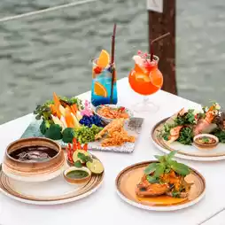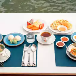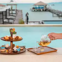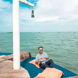 A cafe in the middle of the sea. The atmosphere is quiet and cool.