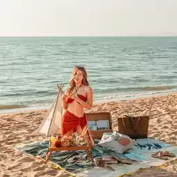 - Picnic Set Sit and relax by the beach, watch the evening light with a chic picnic set. Take great photos. And the set also has food and drinks. The highlight is Ravindra's Thong Go fish. Don't miss it!!
