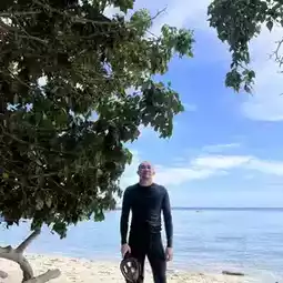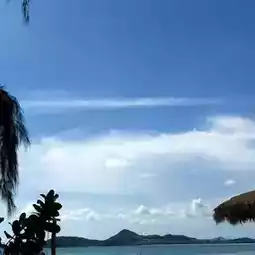 The sea is blue and fresh until you shout wow. The weather is a bit hot but it's really beautiful.