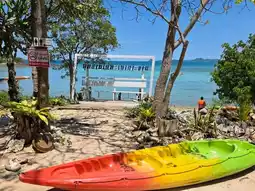 Activities include diving, watching fish, or just sitting and chilling by the sea.