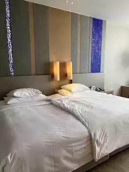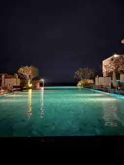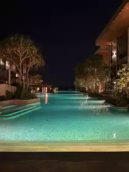 5-star hotel, private beach But this time I checked in late so there are no pictures during the day. Here, there is a private beach, you can play in the water comfortably or swim. The pool is really beautifully designed.