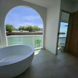 Baan Tah is a small accommodation in Bang Saray located on a wooden bridge extending into the sea. Every room seems to be designed to offer a panoramic view. When you open the door, you’ll be greeted by the salty breeze blowing on your face, gentle waves crashing against the soft bean bags along the bridge railing.