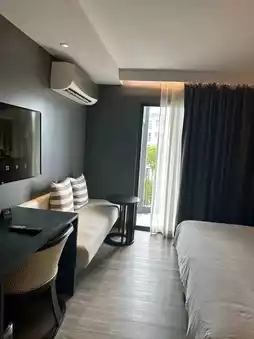 This is a recommended hotel in Chonburi, located right by the sea with a pleasant atmosphere. I stayed here with my family, and overall, the room was good and reasonably priced. There was housekeeping service to keep the room clean. In the morning, there was a dining area for breakfast. On the upper floor, there was a swimming pool. Behind the hotel, there was a beachfront area with a seafood restaurant offering fresh and delicious dishes without any fishy smell. Highly recommended! However, there was a minor issue during our stay—the lights in our room couldn't be turned off, possibly due to a malfunction.