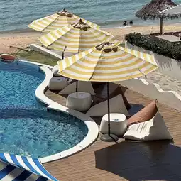 • Lots of photo spots, including beach hammocks, linen sofas, cloth tents, and under coconut trees 🌴