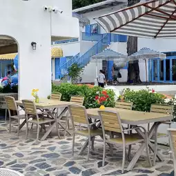• You can sit all day long, with cloth tents, rugs, hammocks, and a cool indoor area