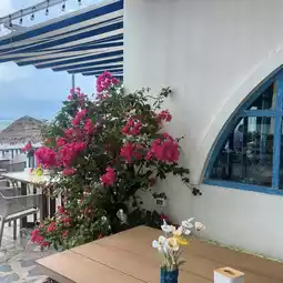 A white-blue beachside cafe in Santorini style in Pattaya 🌊💙