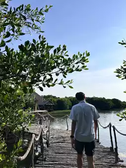 A cafe that feels like you’ve entered another world! “Coffee shop, K.T.O.” is located in the Gulf Patrol Squadron area, Sattahip Naval Base. It’s a cafe filled with natural atmosphere, a vast sea view, lush mangrove forests, and gentle mountains as a backdrop. 🌊⛰️