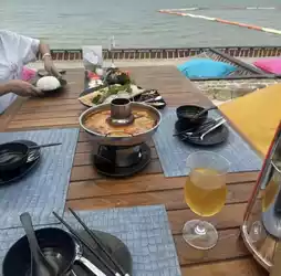 Lots of tables, both beachfront and indoor, polite staff, fast service