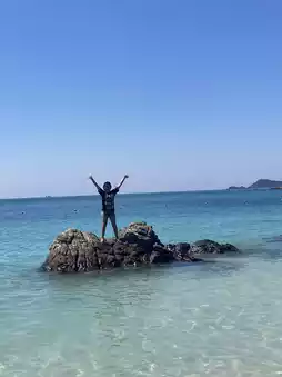 🧡 In short, I really like it. The beach is beautiful, the water is clear, the atmosphere is nice, and you get to see the HTMS up close. It's like a vacation but you also get something cool to take back. This trip is so worth it!