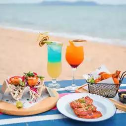 The location here is next to the sea, Na Jomtien Beach. Walk out to the beach There is a nice bar, ๐๐ ๐๐๐ง๐ฃ๐ ๐ฝ๐๐๐๐ ๐ฝ๐๐ง, where you can sit and enjoy the breeze, listen to the sound of the waves, and listen to soft music. I really like the atmosphere. For breakfast, this is a ๐๐ช๐๐๐๐ฉ restaurant with full service. And for dinner, there is ๐๐๐ ๐๐ค๐๐ ๐จ, ๐๐ช๐ฃ๐๐ง. I like the drinks and Italian food that are delicious to Thai people.