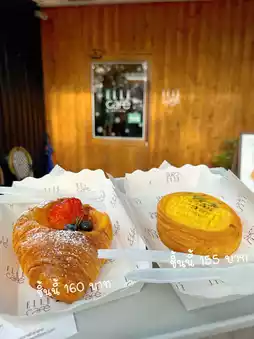 This is a cafe that croissant lovers must try. Their croissants are made fresh daily, priced at 100++ baht per piece. They're fragrant, soft, and incredibly delicious. They also sell knick-knacks and accessories. The shop has a very feel-good atmosphere, with plenty of seating and plenty of photo spots. It's so beautiful!