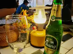 Prices are moderate, with two drinks and four dishes costing around 1,200–1,500 THB, perfect for sharing between two people.